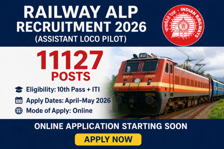 ರೈಲ್ವೆ ಭರ್ಜರಿ ನೇಮಕಾತಿ 2026 🚆: 11,127 ALP ಹುದ್ದೆಗಳು – 10ನೇ + ITI ಸಾಕು! ಅರ್ಜಿ ದಿನಾಂಕ ಮಿಸ್ ಮಾಡ್ಬೇಡಿ ರೈಲ್ವೆ ಇಲಾಖೆಯಲ್ಲಿ 11,127 …