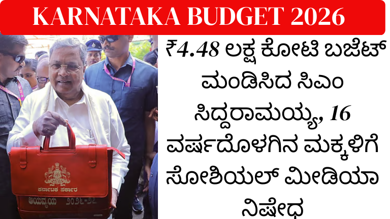 KARNATAKA BUDGET 2026: ₹4.48 ಲಕ್ಷ ಕೋಟಿ ಬಜೆಟ್ ಮಂಡಿಸಿದ ಸಿಎಂ ಸಿದ್ದರಾಮಯ್ಯ, 16 ವರ್ಷದೊಳಗಿನ ಮಕ್ಕಳಿಗೆ ಸೋಶಿಯಲ್ ಮೀಡಿಯಾ ನಿಷೇಧ ಕರ್ನಾಟಕ ಮುಖ್ಯಮಂತ್ರಿ ಸಿದ್ದರಾಮಯ್ಯ ಅವರು …